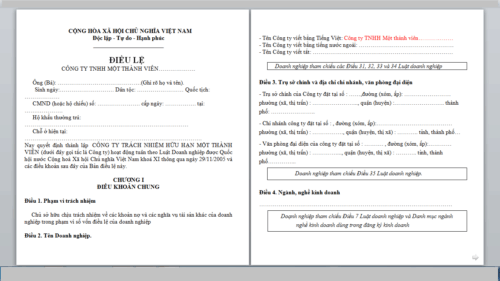 Hướng dẫn nộp hồ sơ thành lập công ty TNHH 1 thành viên